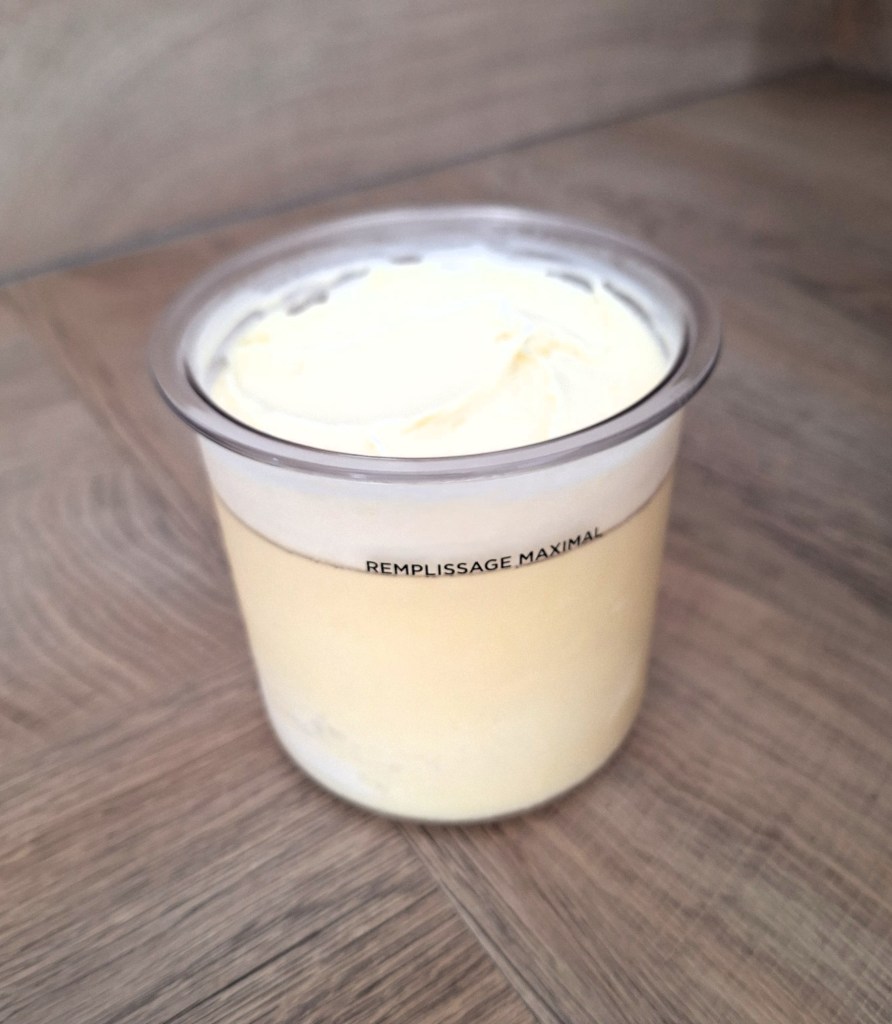 Si vous avez trop cuit la crème anglaise et qu’elle a tranchée, pas de panique, un petit coup de mixer plongeant et c’est reparti.